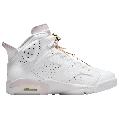 Supplier-sku #: DH9696-100Hoops heritage inspired by hoop earrings! This special “Gold Hoop†colourway of the Jordan AJ 1 Zoom Retro 6 pair flaunts subtle white and rosy colour throughout its design accented with metallic gold. Once a statement of regal status and power, hoop earrings add timeless sophistication to your classic shoe game. This heritage pair features smooth leather construction, semi-gloss lining and a translucent rubber outsole. While the upper is spattered with venting along the side and ankle for more airflow, the outsole houses a translucent rosy window peeping into the Air unit inside.